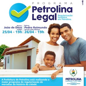 Na sequência das ações do maior programa de regularização fundiária da história do município, equipes da Prefeitura de Petrolina chegam aos bairros João de Deus e Pedro Raimundo nos próximos dias 25 e 26. A ideia é orientar os moradores sobre o procedimento para a regularização das moradias, além de recolher documentos de quem já tiver reunido material que ajude a comprovar a titularidade do imóvel.