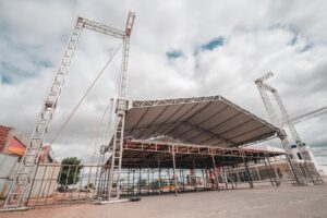A montagem inclui palco, que tem 12 metros de comprimento e 8 de largura, camarins, área para bares e restaurantes, cerca de 20 banheiros químicos, portaria, telão de led, gerador e equipamentos de iluminação e sonorização, além de reforço na segurança. O espaço é pensado para acolher moradores da região e visitantes com conforto e infraestrutura adequada para os shows musicais.
