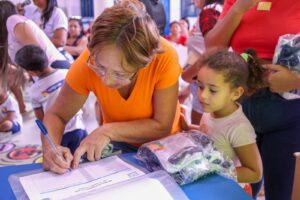 Nas próximas semanas, cerca de 60 mil estudantes da rede municipal de Petrolina irão receber os novos uniformes das creches e escolas. A primeira entrega simbólica aconteceu nesta quarta-feira (19), no Centro Municipal de Educação Infantil Proinfância Tereza Maria de Amorim, no bairro Rio Corrente. A gestão municipal fez a entrega das primeiras unidades em um momento marcado por muita alegria dos pequenos e dos pais que também acompanharam a entrega.