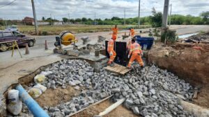 A obra consiste na substituição de mais de 100 manilhas com dimensão de 300 milímetros por equipamentos de 1.000 milímetros instalados na saída de água. O trabalho está sendo realizado pela Secretaria de Infraestrutura e Mobilidade (Seinfra). No momento, as equipes atuam na recomposição da via.