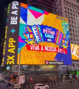 Faltando um mês para o São João de Petrolina começar, os forrozeiros de plantão já podem começar a contagem regressiva para a melhor festa junina do Brasil. Comprovando a sua grandiosidade e o tamanho da festa no Pátio Ana das Carrancas, o evento foi divulgado nos Estados Unidos, numa das mais famosas avenidas do mundo, na Times Square, em Nova Iorque.