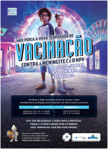 Com o intuito de chamar a atenção dos jovens para a imunização contra HPV e Meningite C, o Ministério da Saúde lançou a Campanha de Mobilização e Comunicação para a Vacinação do Adolescente contra esses dois agravos. Com o slogan “Não perca a nova temporada de vacinação contra a meningite C e o HPV”, a meta é vacinar cerca de 10 milhões de jovens em todo o país.